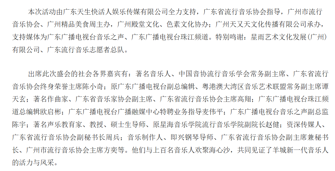百名音乐人齐聚海心沙 共庆第二届羊城音乐盛典