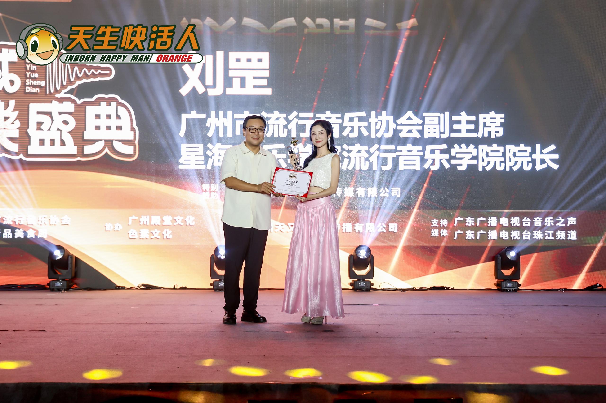 音乐制作人、广东歌舞剧院歌剧团副团长、广州市流行音乐协会副主席童达琴为《如期》颁奖;