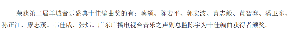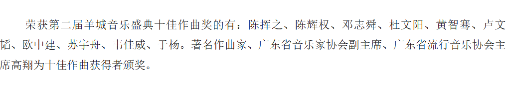 著名作曲家、广东省音乐家协会副主席、广东省流行音乐协会主席高翔为《璀璨广州》颁奖;